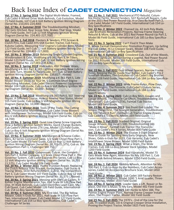 All of our back issues from Fall 2010 to current are all available for purchase. They are $6.50 per issue or $24.00 for a complete volume set. If you are purchasing 7 or more back issues add an additional $10.00, 12 or more add $20.00 for shipping. Mail orders to: Cadet Connection, P.O. Box 1827, Butler PA 16003-1827. You can also Paypal funds to us at: sell@cadetconnection.com or call (724) 355-5662 to order over the phone. See below for a complete listing of back issues. Volumes DO NOT run concurrent with calendar years. Back issue shipping rates are higher for Canada and International regions due to increased postal costs. Email us for a quote on Canadian and International shipments.